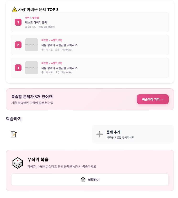 수능 준비생을 위한 AI 기반 스마트 오답노트 서비스